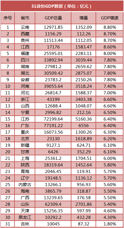 31省份近日陸續(xù)公布了前三季度地區(qū)生產(chǎn)總值(GDP)數(shù)據(jù),從GDP總量來(lái)看,廣東依舊“霸居”全國(guó)榜首,25省份GDP突破萬(wàn)億元;從GDP增速來(lái)看,17個(gè)省份GDP增速超過(guò)全國(guó)水平,西部地區(qū)表現(xiàn)搶眼。