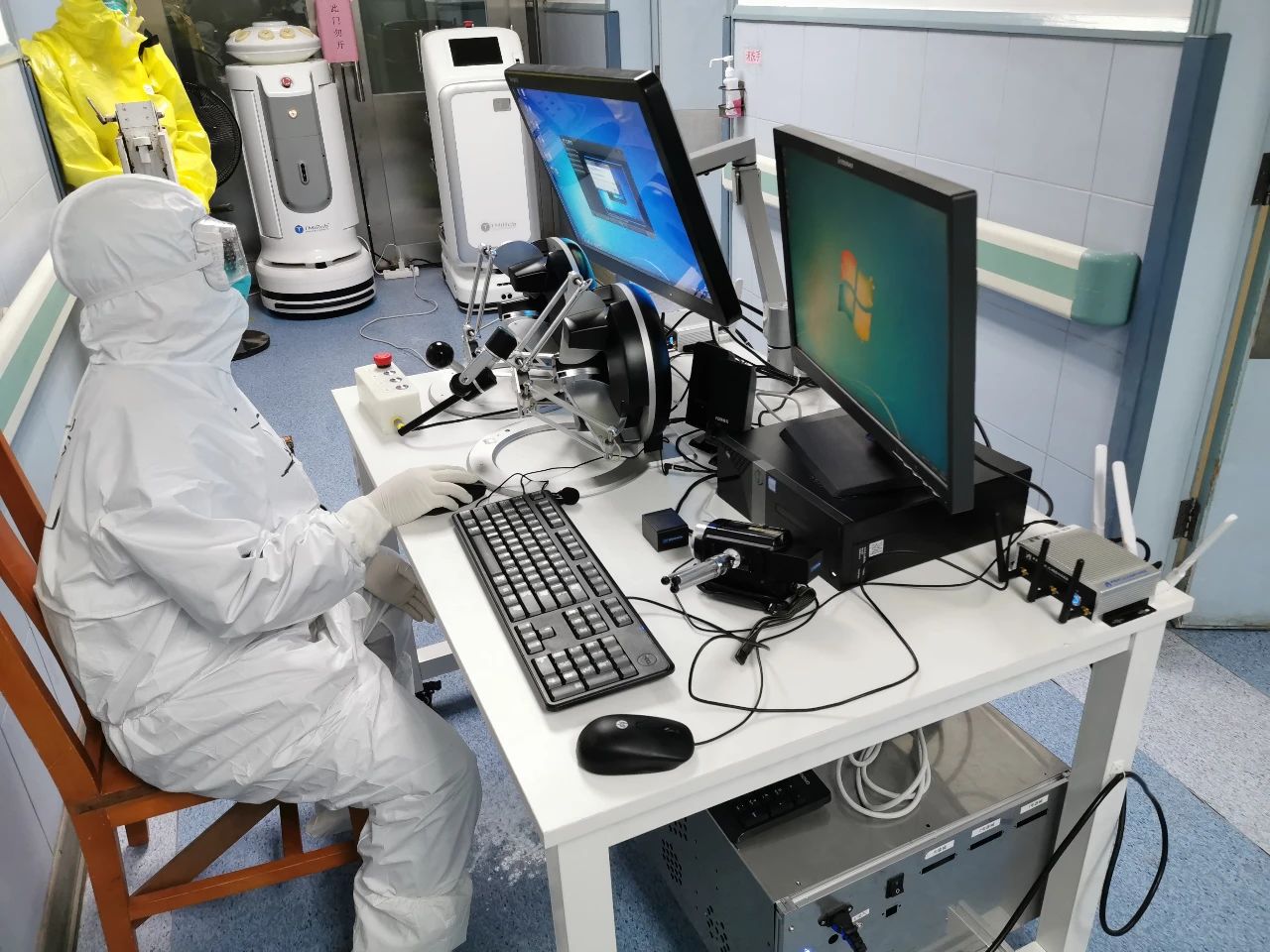 一是保護(hù)醫(yī)務(wù)人員,避免潛在感染風(fēng)險(xiǎn)。在常規(guī)咽拭子操作過程中,醫(yī)務(wù)人員須與新冠病毒患者近距離接觸,具有較高的感染風(fēng)險(xiǎn),通過該系統(tǒng)醫(yī)務(wù)人員可以遠(yuǎn)程人機(jī)協(xié)作進(jìn)行采樣,有效避免了交叉感染。