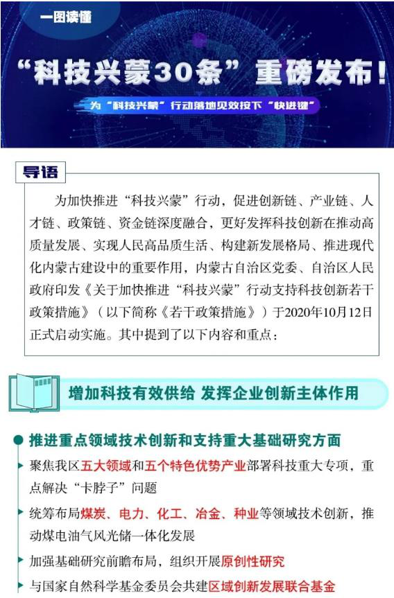 一圖讀懂《關于加快推進“科技興蒙”行動支持科技創新若干政策措施》